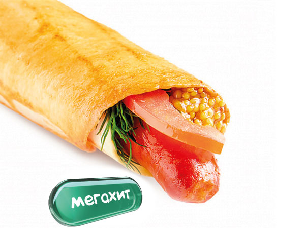 Запеченная лепешка пшеничнаяколбаска Карпатскаяпомидормасло чесночноегорчица зернистаяпродукт Моцарелласоус